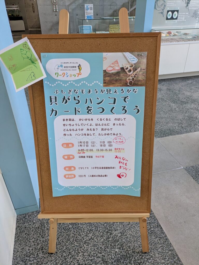 特別貝に興味があるわけではないのですが、「貝がらハンコでカードを作ろう」というイベントがあったので、おもしろそうだなぁと思い行って来ました!